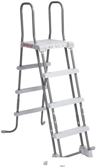 Описание Краткая информация об отличиях товара от конкурентных моделей и аналогов, сведения о позиционировании на рынке, преемственности и др. Лестница с площадкой для каркасных и надувных бассейнов INTEX 28076 с высотой борта 122 см. Легко и быстро устанавливается, имеет широкий угол между сторонами, достаточный для того чтобы не касаться стенок бассейна и в тоже время быть удобной в использовании. Конструкция лестницы позволяет закрыть доступ детей в бассейн без присмотра взрослых. Стойки лестницы металлические с влагозащищенным покрытием, имеют специальные наконечники-колпачки, защищающие дно бассейна от повреждения. Ступеньки и площадка сделаны из усиленного ABS пластика, имеют противоскользящую насечку. Прыгать с лестницы в бассейн запрещено! |