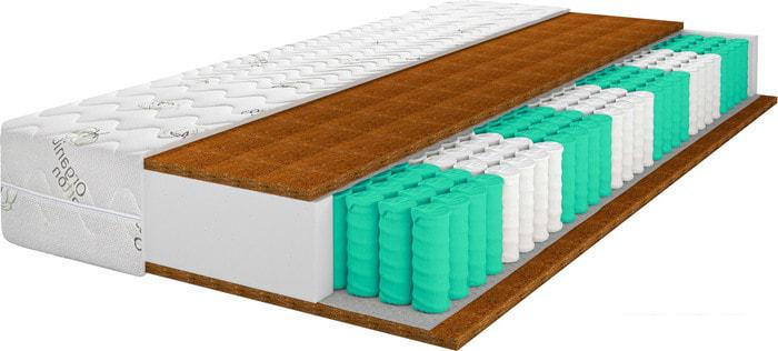 Кокосовая койра Кокосовая койра изготавливается из волокон кокосового ореха, полученных тем или иным способом. Натуральный материал пропитываются латексом (искуственным или натуральным) и приобретают упругость, быстро восстанавливают первоначальную форму, не имеют остаточной деформации. Впрочем, считается, что кокосовые койры недолговечны и могут со временем деформироваться. Слой кокосовой койры придает матрасу дополнительную жёсткость. |