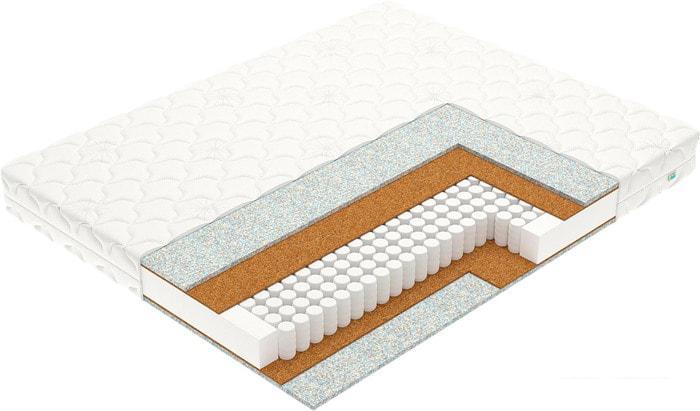 Кокосовая койра Кокосовая койра изготавливается из волокон кокосового ореха, полученных тем или иным способом. Натуральный материал пропитываются латексом (искуственным или натуральным) и приобретают упругость, быстро восстанавливают первоначальную форму, не имеют остаточной деформации. Впрочем, считается, что кокосовые койры недолговечны и могут со временем деформироваться. Слой кокосовой койры придает матрасу дополнительную жёсткость. |