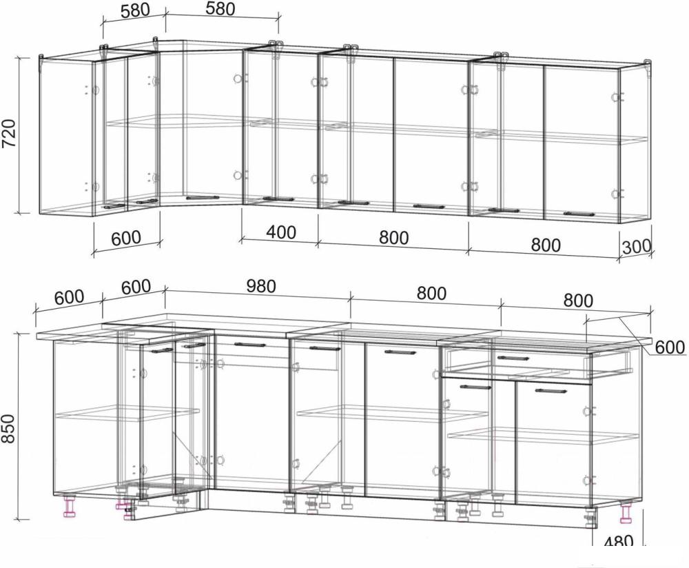| Высота нижних шкафов | 85 см |
