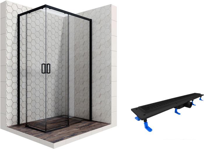 Описание Краткая информация об отличиях товара от конкурентных моделей и аналогов, сведения о позиционировании на рынке, преемственности и др. Комплект душевого уголка с линейным трапом |