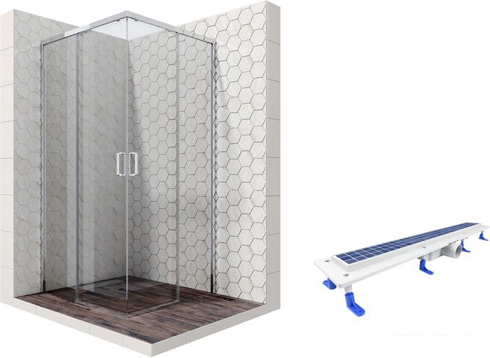 Описание Краткая информация об отличиях товара от конкурентных моделей и аналогов, сведения о позиционировании на рынке, преемственности и др. Комплект душевого уголка с линейным трапом |