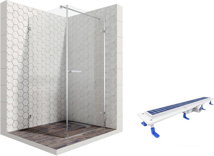 Описание Краткая информация об отличиях товара от конкурентных моделей и аналогов, сведения о позиционировании на рынке, преемственности и др. Комплект душевого уголка с линейным трапом |