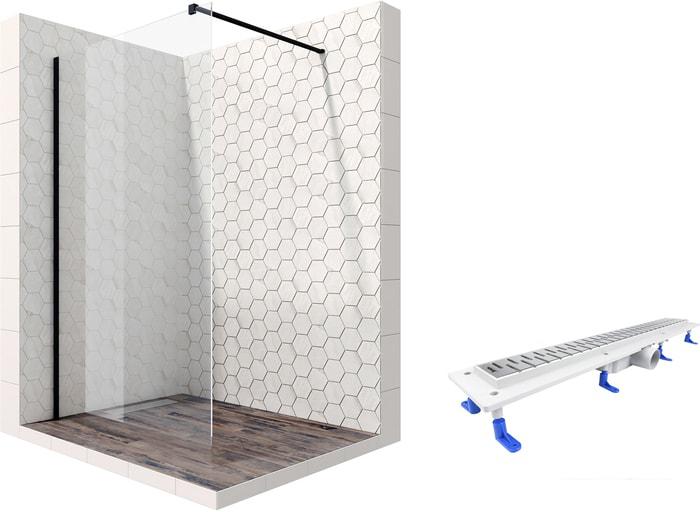 Описание Краткая информация об отличиях товара от конкурентных моделей и аналогов, сведения о позиционировании на рынке, преемственности и др. Комплект душевого уголка с линейным трапом |