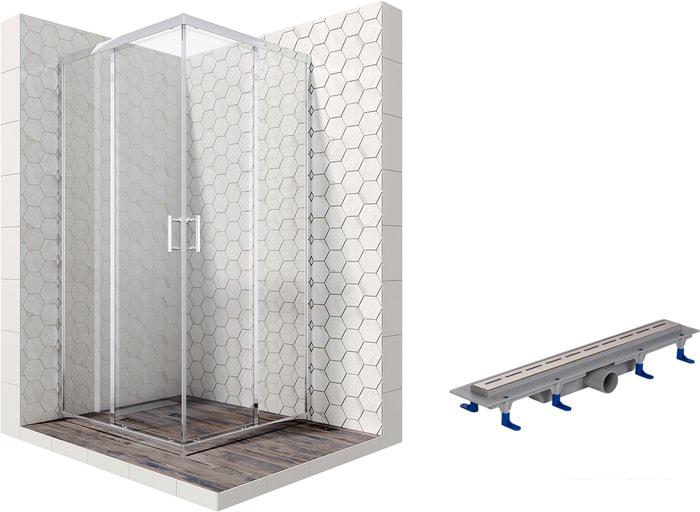 Описание Краткая информация об отличиях товара от конкурентных моделей и аналогов, сведения о позиционировании на рынке, преемственности и др. Комплект душевого уголка с линейным трапом |