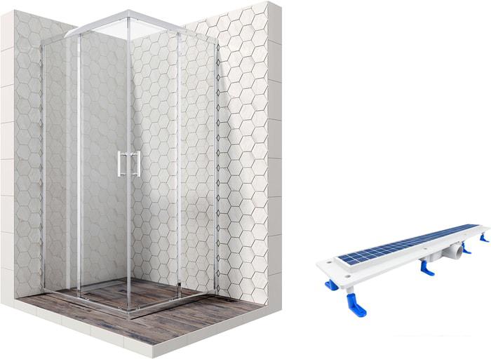 Описание Краткая информация об отличиях товара от конкурентных моделей и аналогов, сведения о позиционировании на рынке, преемственности и др. Комплект душевого уголка с линейным трапом |