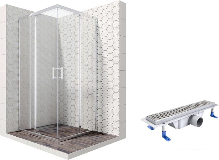 Описание Краткая информация об отличиях товара от конкурентных моделей и аналогов, сведения о позиционировании на рынке, преемственности и др. Комплект душевого уголка с линейным трапом |