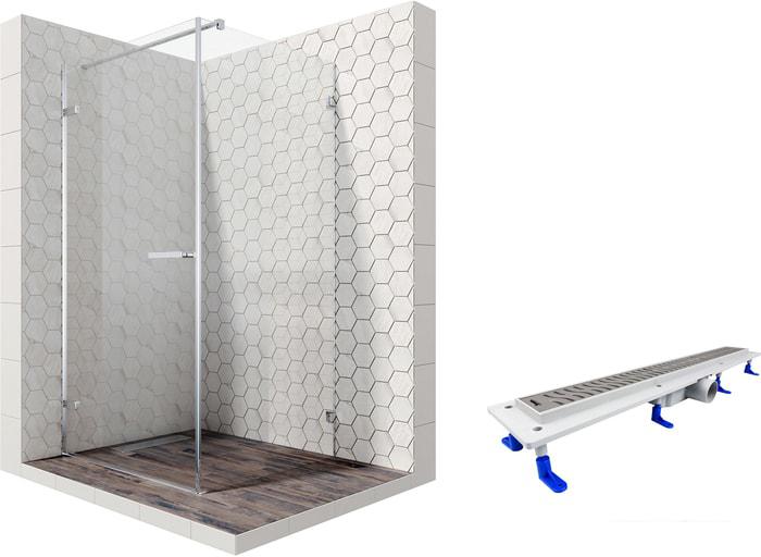 Описание Краткая информация об отличиях товара от конкурентных моделей и аналогов, сведения о позиционировании на рынке, преемственности и др. Комплект душевого уголка с линейным трапом |