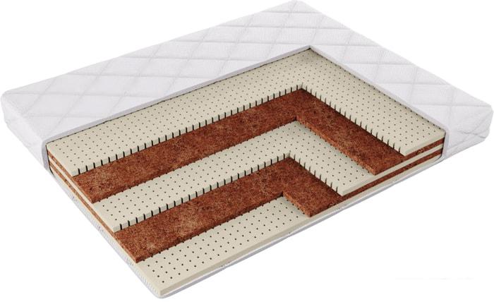 Кокосовая койра Кокосовая койра изготавливается из волокон кокосового ореха, полученных тем или иным способом. Натуральный материал пропитываются латексом (искуственным или натуральным) и приобретают упругость, быстро восстанавливают первоначальную форму, не имеют остаточной деформации. Впрочем, считается, что кокосовые койры недолговечны и могут со временем деформироваться. Слой кокосовой койры придает матрасу дополнительную жёсткость. |