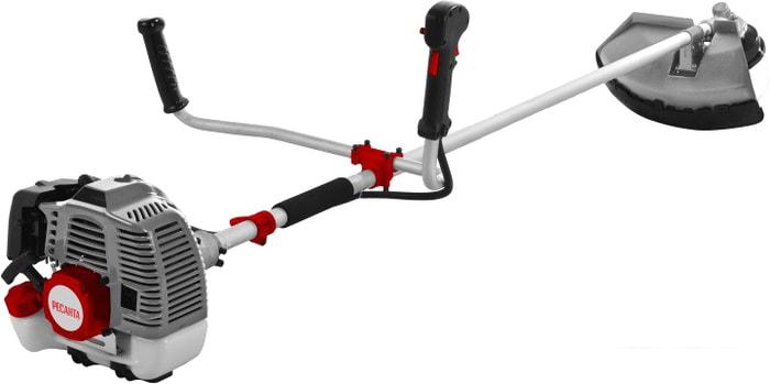 Штанга с редуктором Рукоятки управления (левая и правая) Защитный кожух Катушка с леской Режущий диск Наплечный ремень Ёмкость для смешивания топливной смеси Комплект инструментов и принадлежностей Защитные очки |