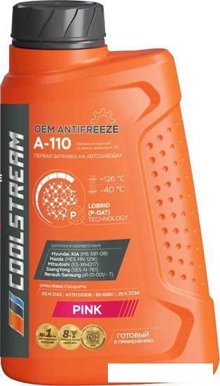 Описание Описание, предоставляемое производителем. Coolstream A-110 — фосфатный лобридный антифриз (P-OAT), используемый для заправки в новые автомобили на заводах Hyundai и KIA по всему миру. Специально разработан под технические требования Hyundai-KIA, обладает официальным допуском Hyundai, KIA MS 591-08. |