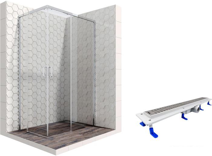 Описание Краткая информация об отличиях товара от конкурентных моделей и аналогов, сведения о позиционировании на рынке, преемственности и др. Комплект душевого уголка с линейным трапом |