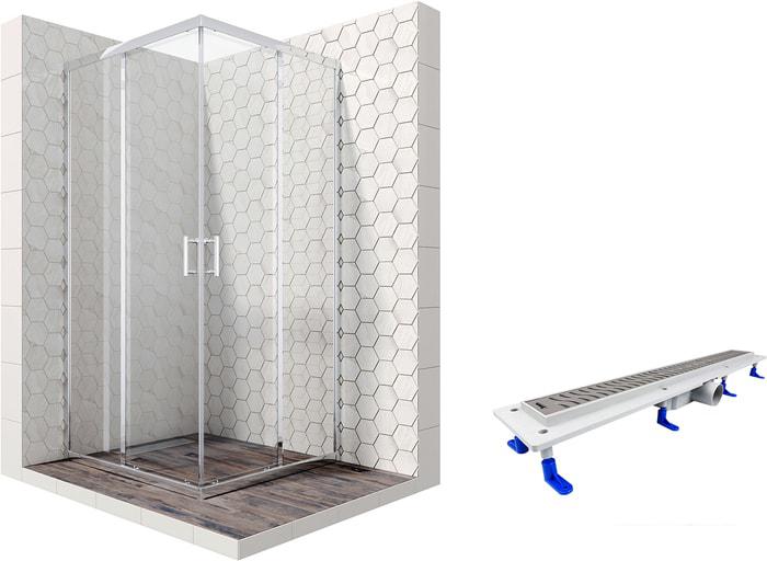 Описание Краткая информация об отличиях товара от конкурентных моделей и аналогов, сведения о позиционировании на рынке, преемственности и др. Комплект душевого уголка с линейным трапом |