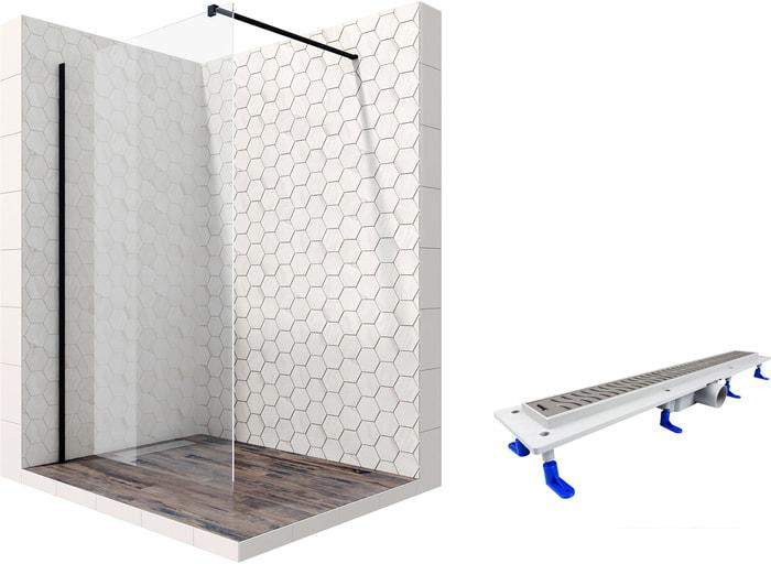 Описание Краткая информация об отличиях товара от конкурентных моделей и аналогов, сведения о позиционировании на рынке, преемственности и др. Комплект душевого уголка с линейным трапом |