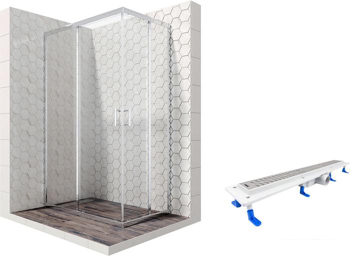 Описание Краткая информация об отличиях товара от конкурентных моделей и аналогов, сведения о позиционировании на рынке, преемственности и др. Комплект душевого уголка с линейным трапом |