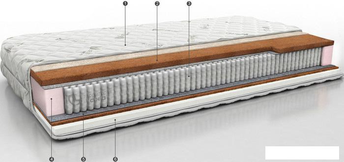 Количество зон жёсткости Как правило, в ортопедических матрасах пружинный блок имеет несколько зон, в которых различается упругость и жёсткость пружин. Это необходимо для достижения одинаковой поддержки различных частей тела - головы, шеи, плечевого пояса, талии, бедер, голеней, стоп. |