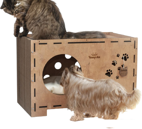 Описание Краткая информация об отличиях товара от конкурентных моделей и аналогов, сведения о позиционировании на рынке, преемственности и др. Домик Сундук разработан с учетом потребностей домохозяйств, в которых обитает пара питомцев. Особенность конструкции в том числе позволяет разрешать такую проблему как кормление кошки на верхней части, так и пребывание маленькой собачки в нижней части конструкции. |