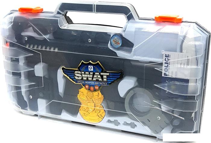 | Состав набора | автомат, наручники, свисток, очки, ключи (2 шт.), бинокль, жетон, нож, кастет, удостоверение, фонарик |