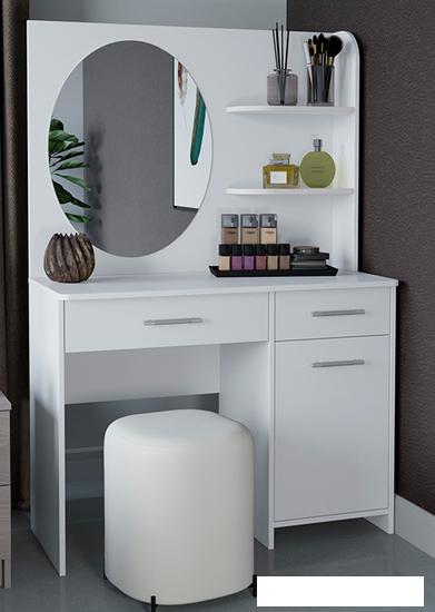 Тип Туалетный столик — это небольшой предмет мебели, который, как правило, ставят в спальне или и ванной. Здесь хранится косметика, украшения и предметы личной гигиены. Такой столик может быть оснащен зеркалом, для удобства нанесения макияжа. |