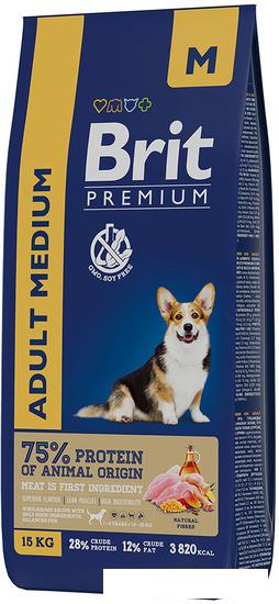 Описание Рекламное описание товара, взятое с сайта производителя, в котором кратко сообщается о предназначении и позиционировании модели на рынке. Полнорационный сухой корм Brit Premium Adult Medium с курицей для взрослых собак средних пород (10-25 кг). |