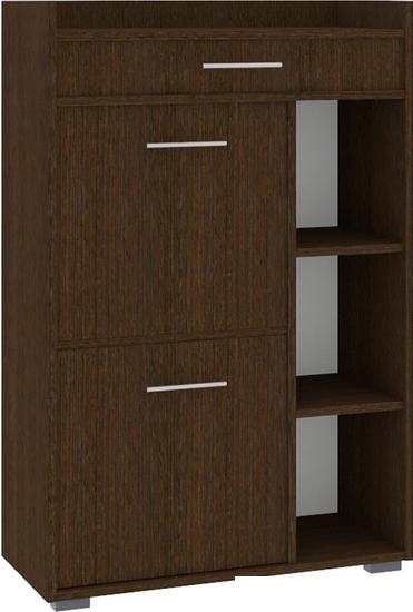 Описание Краткая информация об отличиях товара от конкурентных моделей и аналогов, сведения о позиционировании на рынке, преемственности и др. Тумба для обуви ЛАРА ТП4 производства «Кортекс-Мебель» вмещает в закрытые фасадами полки до 8 пар обуви, что позволяет держать прихожую в чистоте, а обувь в быстром доступе. |