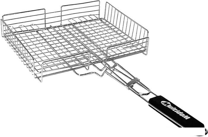 Гриль-решетка, как правило, содержит две проволочные сетки, между которыми зажимается продукт и две ручки, одна из которых (более короткая) соединена с одной сеткой, а другая, более длинная, снабжена держателем для хвата рукой и соединена — с другой сеткой. При сложении ручки и сетки, с зажатой между ними пищей, становятся в одной плоскости. Для фиксации ручек используют кольца. Существуют и другие виды решеток. Как правило, они представляют собой плоскую поверхность, которая укладывается непосредственно над углями. Вид исполнения решеток может быть как круглым, так и прямоугольным. Некоторые решетки могут быть оснащены специальными ножками, что позволяет расширить функционал решетки при эксплуатации. |