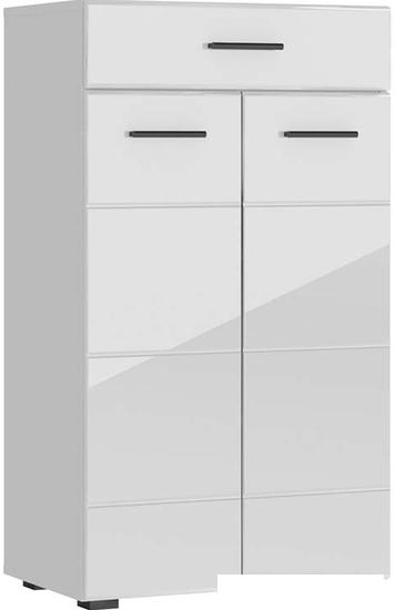 Описание Краткая информация об отличиях товара от конкурентных моделей и аналогов, сведения о позиционировании на рынке, преемственности и др. Комод Глосс поможет держать вещи в порядке. Выдвижной ящик удобен для хранения важных мелочей. Полки за распашными дверцами разместят одежду, обувь, коробки или сезонные аксессуары. Контрастные черные ручки на глянцевых фасадах дарят модели особый лоск. |