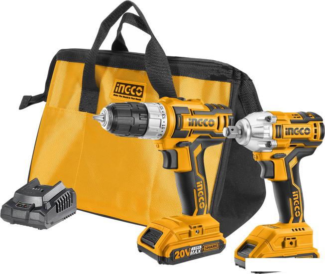 - дрель-шуруповерт Ingco Standard CDLI20024 - гайковерт Ingco Industrial CIWLI2001 - аккумулятор 2 Ач - 2шт - 2 биты и 3 торцевые головки (17, 19, 21) - зарядка - 1шт - сумка |