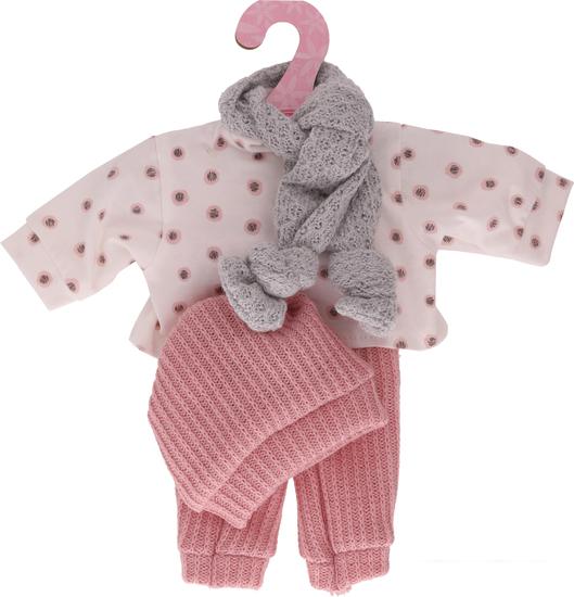 кофта с нежным принтом, вязаные штанишки, шапка и шарф |