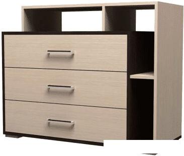 Описание Краткая информация об отличиях товара от конкурентных моделей и аналогов, сведения о позиционировании на рынке, преемственности и др. Комод Горизонт Мебель Уют/Юнона универсал 1.0 венге/дуб |