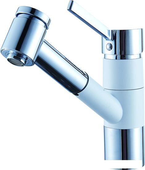 Выдвижной/гибкий излив Некоторые смесители, обычно кухонные, имеют выдвижной излив, чаще всего телескопический. На конце излива может быть как обычный аэратор, так и душевая лейка. |