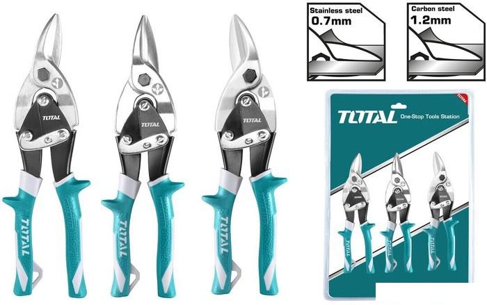Описание Краткая информация об отличиях товара от конкурентных моделей и аналогов, сведения о позиционировании на рынке, преемственности и др. Набор ножниц по металлу 250 мм TOTAL THT520106K (3 шт) |