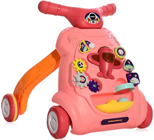 Трансформация Ходунки-трансформеры предполагают возможность преобразования: например, колесики могут убираться и выдвигаться полозья, превращая ходунки в качалку, в которой с помощью ручки для родителей ребенка можно укачать, игровые панели могут превращаться в развивающие доски и т.д. |