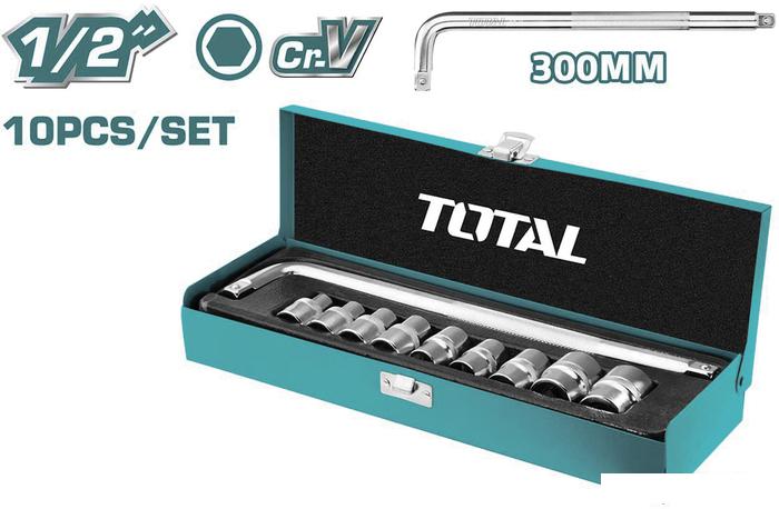 - Головки: 10мм, 12мм, 13мм, 14мм, 17мм, 19мм, 21мм, 22мм, 24мм; - Вороток 300мм; - Кейс. |