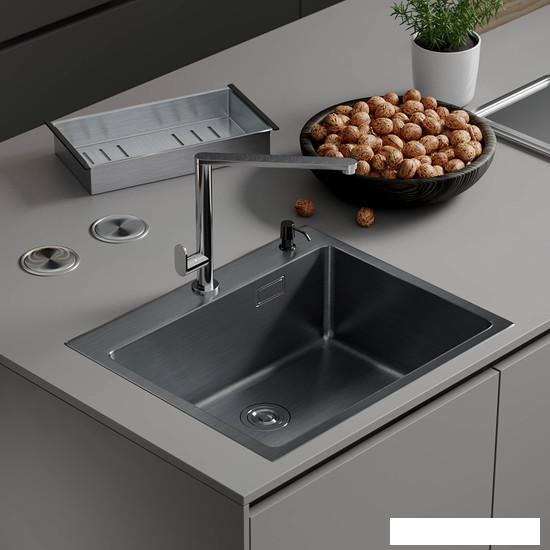 сифон с гофрой, коландер из нержавеющей стали, дозатор для моющих средств, корзинчатый вентиль, 2 заглушки на отверстия, комплект креплений к столешнице |