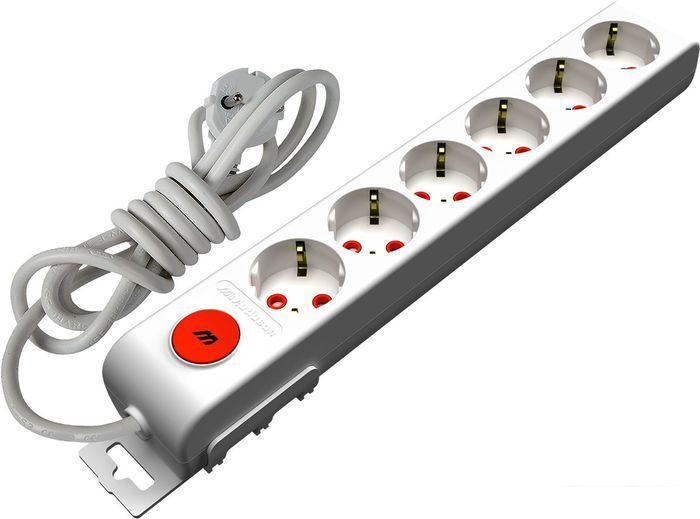 Кнопка включения/выключения Наличие кнопки включения/выключения питания на розетках сетевого фильтра или удлинителя. |