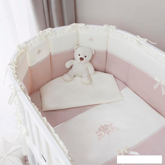 Описание Краткая информация об отличиях товара от конкурентных моделей и аналогов, сведения о позиционировании на рынке, преемственности и др. Нежная и элегантная, модель «Эстель» погружает в атмосферу эпохи Ренессанса. Пастельные тона, воздушное кружево, изящная вышивка и атласные ленты – каждая деталь создает настроение легкости. Комплект продуман до мелочей: Две простыни разных размеров и составной бампер, допускающий варианты сочетания частей, позволяют использовать комплект в круглой, и в овальной кроватке. Специальная форма подушки и одеяло с закругленными углами создают цельную композицию. А функциональность дополнительного кармана уже оценили многие родители (его можно использовать для хранения бутылочки или игрушек во время сна ребенка). |