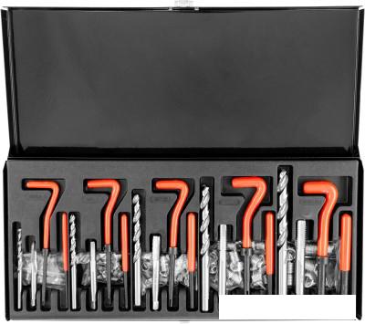 Описание Краткая информация об отличиях товара от конкурентных моделей и аналогов, сведения о позиционировании на рынке, преемственности и др. Набор для восстановления резьбы предназначен для ремонта изношенного или поврежденного резьбового соединения. |