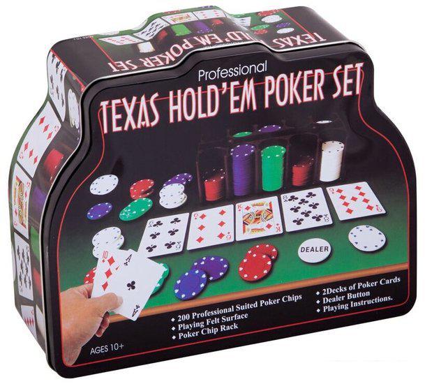 сукно; 2 колоды карт; фишки 200 шт. с номиналом.; фишки дилера, большого, малого блайнда |