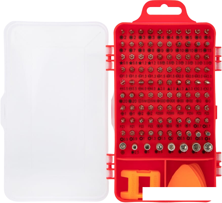 Биты: PH000х2, PH00х2, PH0х2, PH1х2, PH2х2 Биты: Special PH2 Биты: SL1х2, SL1.3х2, SL1.5х2, SL2х2, SL3х2, SL3.5х2, SL4x2 Биты: T2х2, T3х2, T4х2, T5х2, T6x2, T7x2, T8x2, T9x2, T10x2, T15x2, T20x2 Биты: H0.7x2, H0.9x2, H1, H1.3, H1.5, H2, H2.5, H3, H3.5, H4 Биты: P2х2, P5х2, Pentalobe 0.8х2, 1.2х2, 1.5х2 Биты: Triangle 2x2, 2.3x2 Биты: SQ0,1x2 Биты: U2.3х2 Биты: AWL 0.8x2 Биты: Y0.6х2, Y2х2, Y3x2 Биты: PZ000x2, PZ00x2, PZ0x2, PZ1x2, PZ2x2 Головки: M2.5, M3, M3.5, M4, M4.5, M5, M5.5 Удлинитель Гибкий удлинитель Пинцет Спуджеры и медиаторы: 10 шт. Переходник Магнит Присоска Игла Кейс |