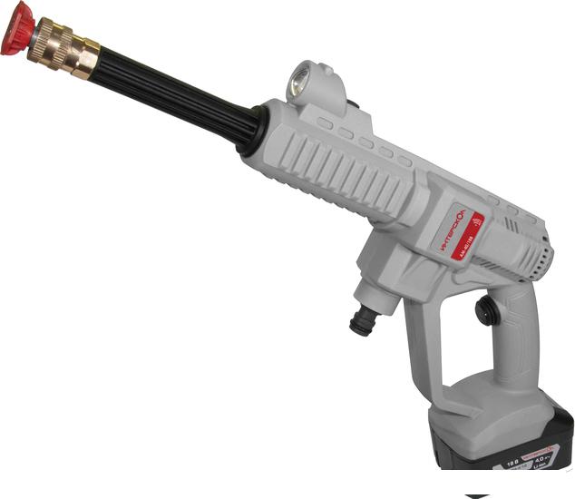 Аккумуляторная мойка Шланг подачи воды Струйная трубка Быстросъем для шланга Фильтр очистки воды Форсунка с углом распыления 0˚ Форсунка с углом распыления 40˚ Емкость для моющего средства Кейс пластмассовый Руководство по эксплуатации и инструкция по безопасности |