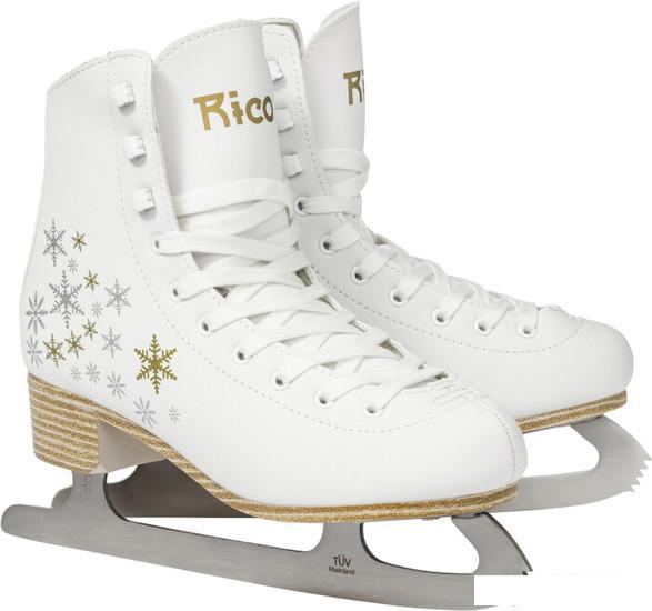 Описание Рекламное описание товара, взятое с сайта производителя, в котором кратко сообщается о предназначении и позиционировании модели на рынке. Коньки фигурные имеют простой классический дизайн и выполнены в белом цвете. Коньки изготовлены из морозоустойчивых материалов. Внешний слой выполнен из искусственной кожи высокого качества, которая не растягивается при контакте с водой. Лезвия коньков изготовлены из нержавеющей стали с анодированием. Анатомическая форма ботинка и язычка и мягкая теплая стелька из ЭВА позволяют ноге чувствовать себя максимально комфортно при крепкой фиксации. |