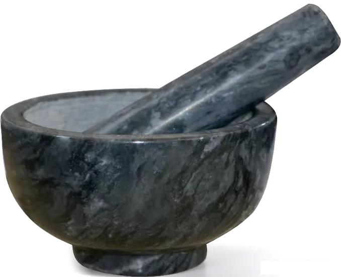Ступка с пестиком подходит для помола любых видов приправ, таких как, перец горошком, крупная каменная или морская соль, а также любую другую приправу для мясных, овощных, рыбных и других блюд.Мрамор не впитывает в себя посторонние запахи, поэтому ступку можно использовать с разными специями и приправами. Для эффективного размельчения внутренняя поверхность ступки и рабочая часть пестика шероховатая. |