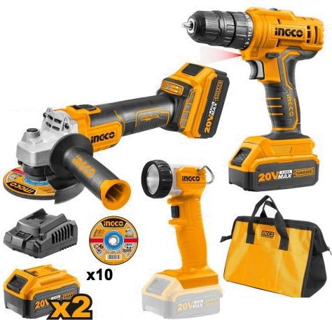 - Шуруповерт CDLI20011, - Аккумуляторная угловая шлифмашина CAGLI201158, - Аккумуляторный фонарь CWLI2023, - Зарядное устройство 1шт, - Количество аккумуляторов в комплекте (шт): 2штх4.0Ач, - Сумка - Диски отрезные 115х22мм - 10 шт, - Ключ для УШМ, - Кожух для УШМ, - Двухкомпонентная рукоятка для УШМ, - Бита двухсторонняя PH2хSL6 - 1шт |