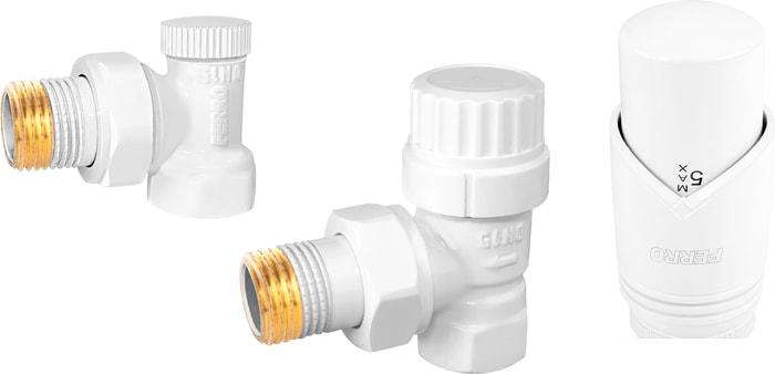 • термостатическая головка GT30 • термостатический клапан угловой 1/2” • отсекающий клапан угловой 1/2” |