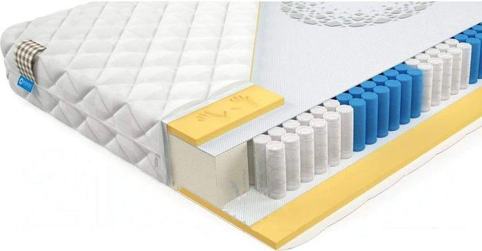 Описание Краткая информация об отличиях товара от конкурентных моделей и аналогов, сведения о позиционировании на рынке, преемственности и др. Матрас c ортопедическим эффектом на основе семи-зонного пружинного долговечного блока независимых пружин SIlverSpringPocket 7 zone. Данный блок насчитывает 1000 металлических пружин на одно спальное место, это оптимальное количество пружин для бюджетного матраса. 7 зональный пружинный блок SSP 1000 значительно прочнее обычного блока независимых пружин, и имеет большее количество витков, что, в свою очередь, лучше сказывается на упругости матраса и качестве сна. Матрас насчитывает семь зон жесткости и правильно повторяет изгибы позвоночника во время сна или отдыха. С каждой стороны матраса расположены по 2 сантиметра memory foam, что делает матрас мягким и обладает эффектом памяти. |