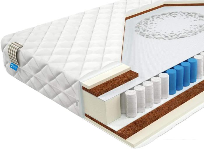 Кокосовая койра Кокосовая койра изготавливается из волокон кокосового ореха, полученных тем или иным способом. Натуральный материал пропитываются латексом (искуственным или натуральным) и приобретают упругость, быстро восстанавливают первоначальную форму, не имеют остаточной деформации. Впрочем, считается, что кокосовые койры недолговечны и могут со временем деформироваться. Слой кокосовой койры придает матрасу дополнительную жёсткость. |