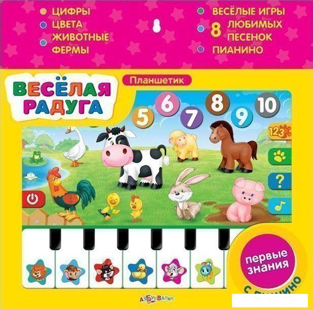 Описание Вот это да! Игровой планшетик теперь с пианино! Нажимая на яркие картинки, ребёнок выучит цифры и цвета, познакомится с животными фермы, отгадает загадки. | |