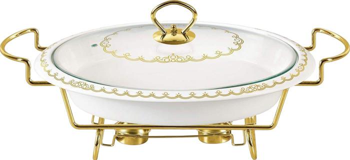 Описание Краткая информация об отличиях товара от конкурентных моделей и аналогов, сведения о позиционировании на рынке, преемственности и др. Мармит изготовлен из жаропрочной керамики, предназначен для приготовления или сохранения пищи в подогретом виде. Стеклянная крышка имеет ручку из нержавеющей стали золотого цвета. Подставка выполнена из металла под золото. Подходит для использования (без крышки) в СВЧ, в духовом шкафу, чистки в посудомоечной машине. Объем: 1.3 л. |