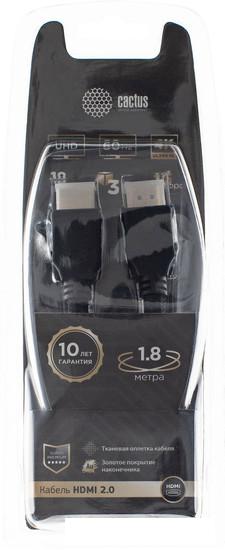 | Кабель аудио-видео Cactus CS-HDMI.2-1.8 HDMI (m)/HDMI (m) 1.8м. Позолоченные контакты черный | 20.11 | Продавец 2 | 15.12.2025 12:44 | Нал/Безнал. | 7-8 дней |